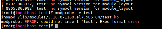 尝试了把/usr/src/kernels/3.10.0-1160.el7.x86_64/Module.symvers 文件复制到test目录下,仍有相同的报错出现。