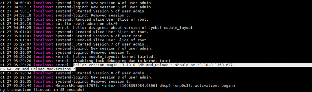而RedHat7.9刚好就开了这个校验,加载模块报错: